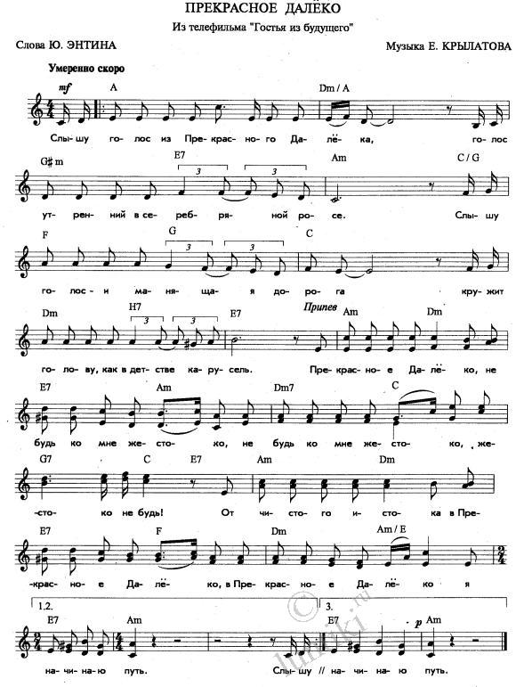 Обучение фортепиано / Обсуждения в сети / Текст песни Прекрасное далёко Из телефильма «Гостья из будущего». Слышу голос из Прекрасного Далек